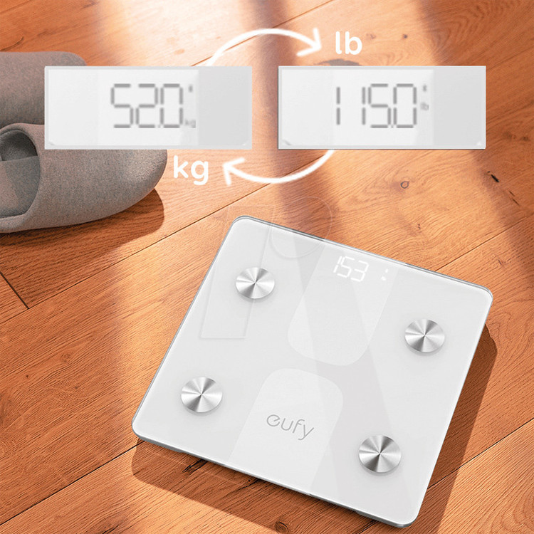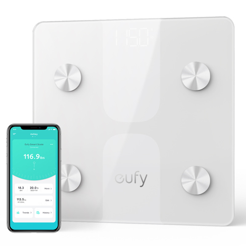 ترازو وزن کشی هوشمند یوفی مدل eufy C1 یک ترازو بر مبنای بلوتوث است و می توانید تمام اطلاعات و آنالیز بدن خود را از با استفاده از نرم افزار EufyHome که بر روی گوشی Android و یا IOS خود نصب می کنید، مشاهده کنید همچین برای دارندگان گوشی های اپل برنامه Apple Health و سایر گوشی های اندرویدی برنامه Fibit App و Google Fit نیز می توانند با این ترازو آنالیز بدنی خود را انجام دهند. همچنین این ترازو قابلیت برقراری ارتباط با Apple Watch را نیز دارد و تا 16 کاربر را همگام سازی میکند. دقت اندازه گیری در این ترازو 100 گرم است که بسیار شگفت انگیز است و تا وزن 180 کیلوگرم را می تواند تحمل کند. با استفاده از این ترازو، 12 حالت تجزیه و تحلیل ترکیب بدن مانند وزن کامل بدن ،BMI ،, BMR, درصد چربی بدن ، درصد آب ، درصد عضله اسکلتی ، وزن بدن بدون چربی ، توده عضلانی ، توده استخوانی ، متابولیسم پایه ، چربی زیر جلدی و چربی احشایی را می توانید محاسبه و کنترل کنید. این ترازو مجهز به چهار سنسور با دقت بالا و چهار الکترود است و باید بر روی یک سطح صاف و بدون فرش قرار بگیرد. همچنین برای وزن کردن ضروری است که هر پا ( به صورت خشک و برهنه ) بر روی دو سنسور بالا و پایین قرار بگیرد تا وزن و محاسبات دقیق را نشان دهد. جنس بدنه این ترازو از شیشه و سیلیکون ABS است و بر روی آن یک شیشه با قطر 5 میلیمتر قرار دارد.